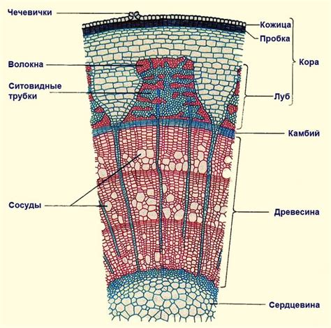 - Ксилема и флоэма: сосудистые ткани, обеспечивающие транспорт воды и питательных веществ.